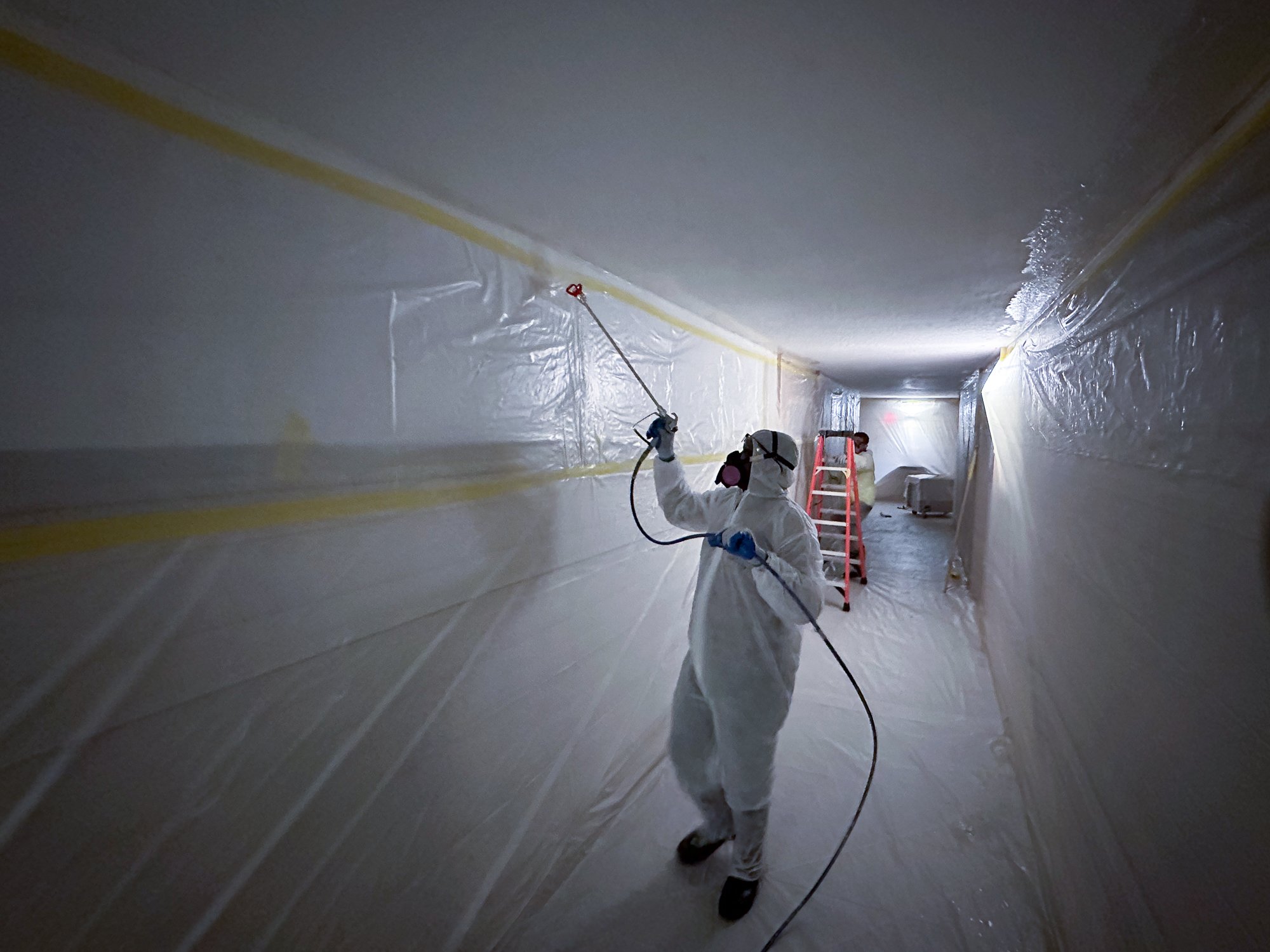 Best-Tec performed popcorn ceiling removal from hallways and laundry rooms on nine floors at The Barclay, a condominium in West Palm, Fl. The material contained asbestos, so large containments on each floor had to be created. This prevented contamination to the rest of building, such as living spaces and common areas. In total, approximately 20,000 sq ft was abated.